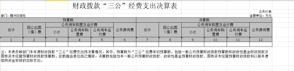 備注:07表為一般公共預(yù)算財政撥款支出決算表,我單位“三公”經(jīng)費(fèi)是用其他資金支出的,即07表為空表。