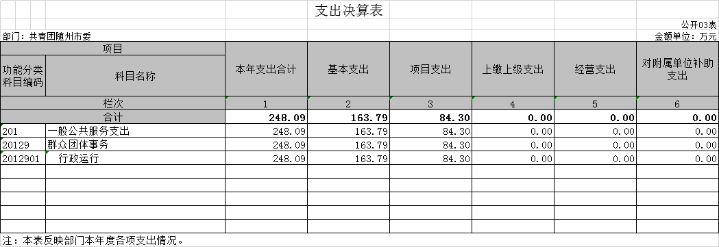 ?本部門2020年度支出總計248.09萬元,較上年247.26萬元增加0.34%,主要原因是共青團團費上繳增加,故導致支出較上年增長。