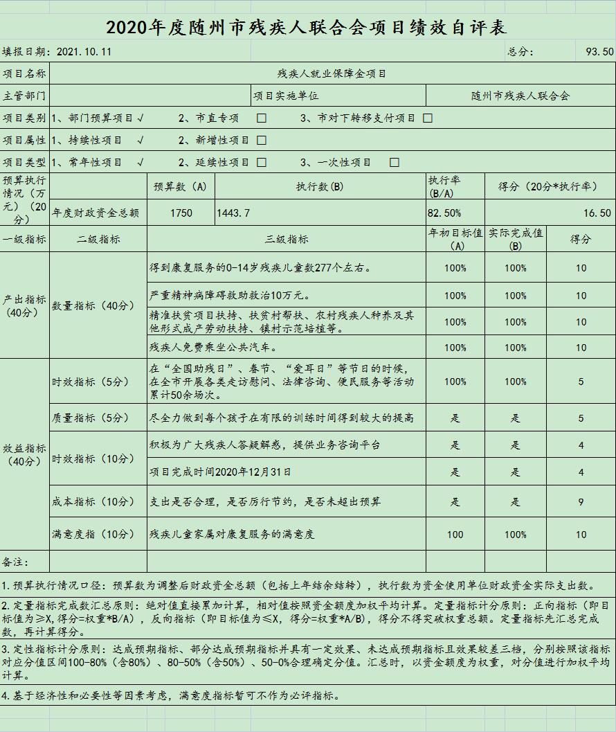 附:2020年部門項目支出績效自評表