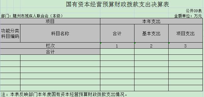 九、國有資本經營預算財政撥款收入支出決算表(公開表09)