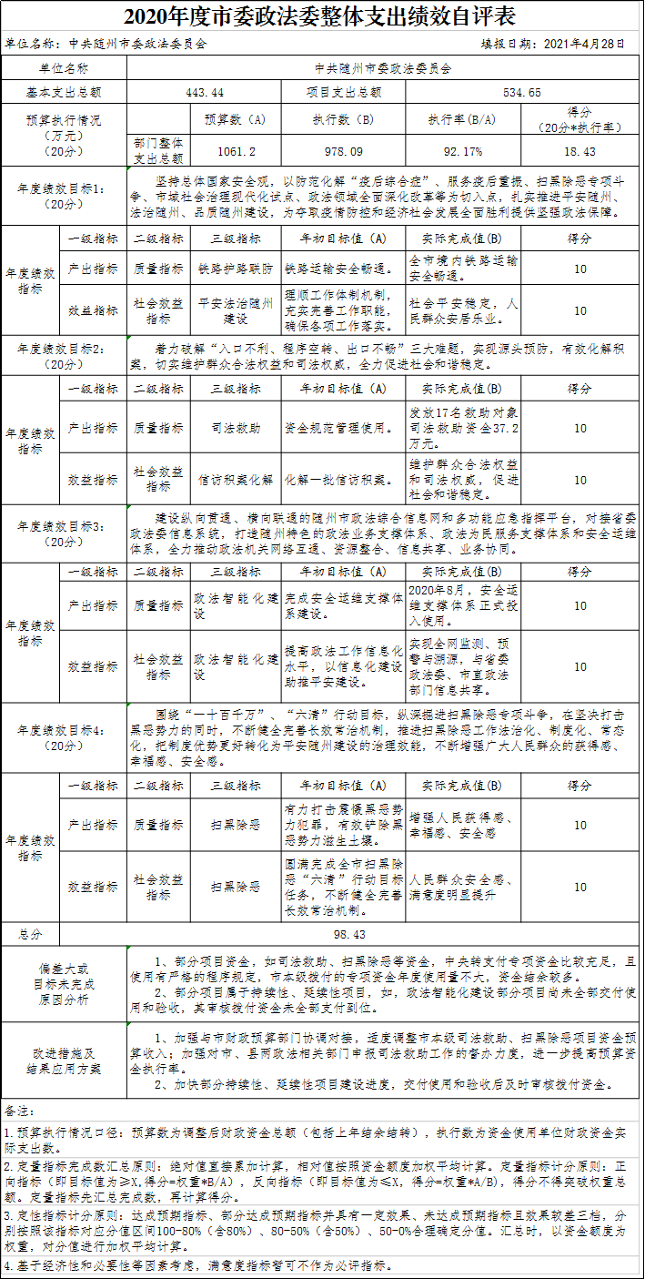 附件:2020年度市委政法委整體支出績效自評表