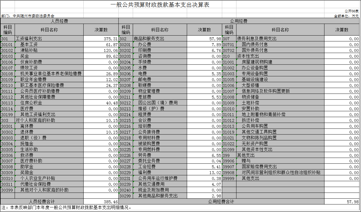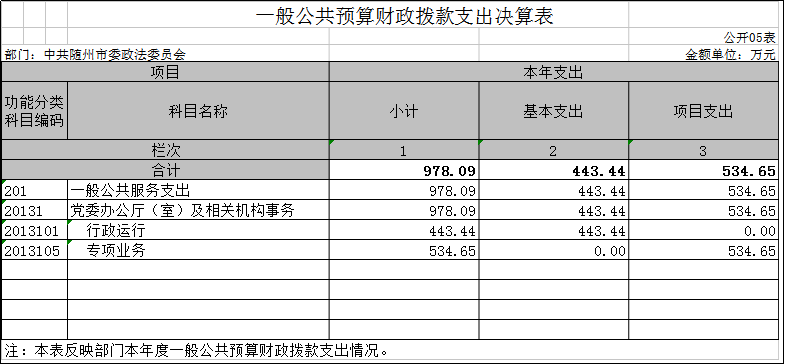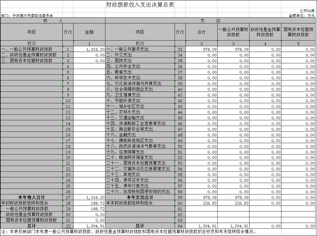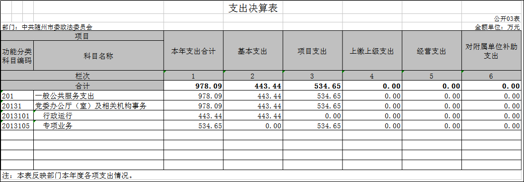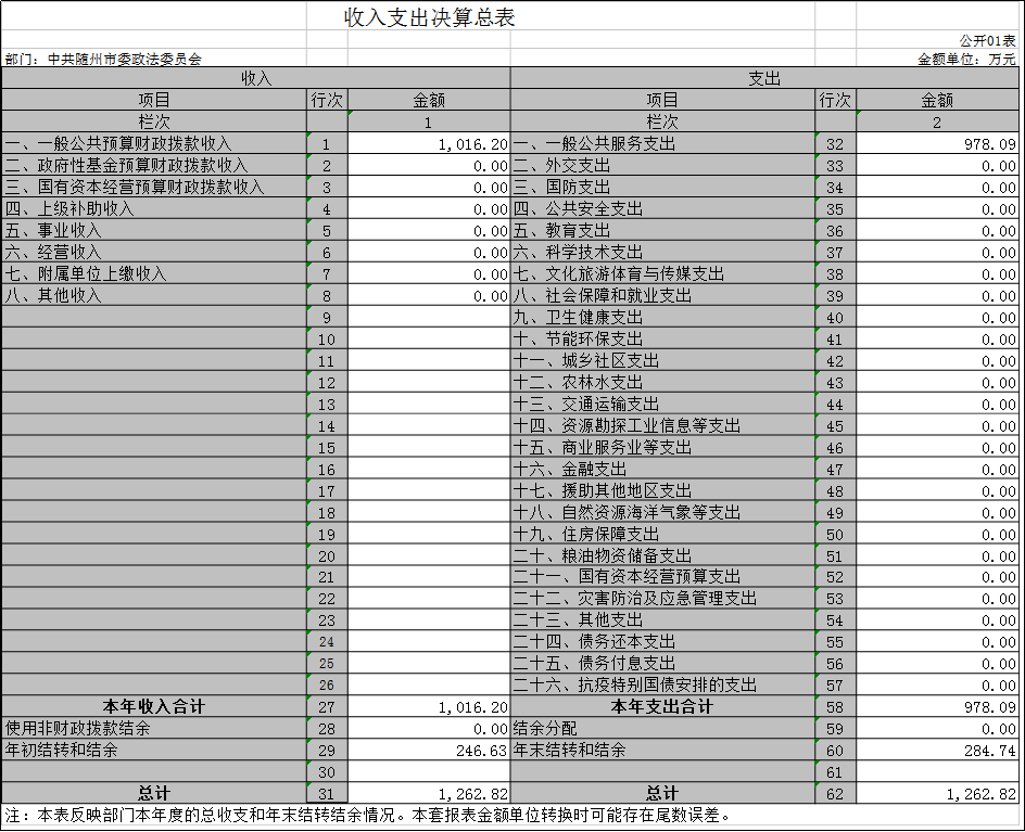 隨州市委政法委2020年部門決算