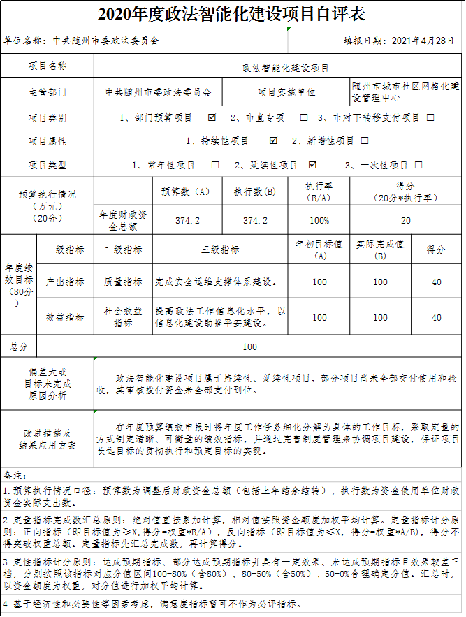 附件:2020年度政法智能化建設項目績效自評表