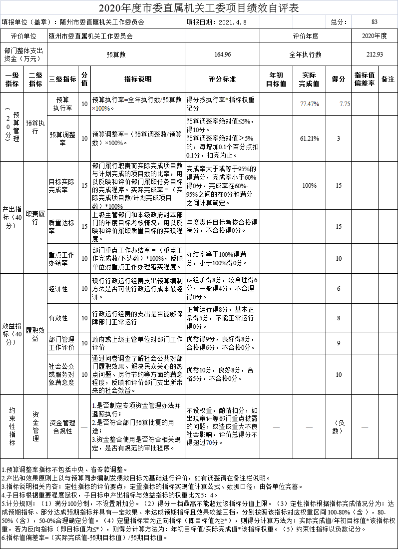 七、關(guān)于2020年度預(yù)算績(jī)效情況的說(shuō)明