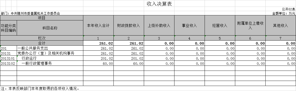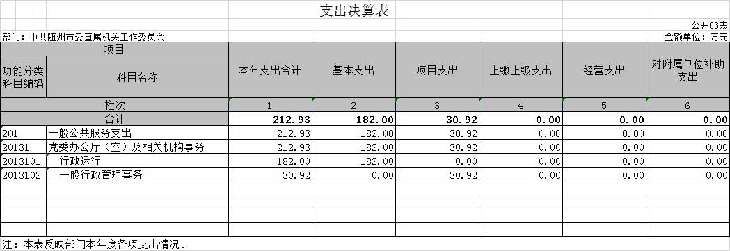 第三部分??中共隨州市委直屬機(jī)關(guān)工作委員會(huì)2020年部門(mén)決算表