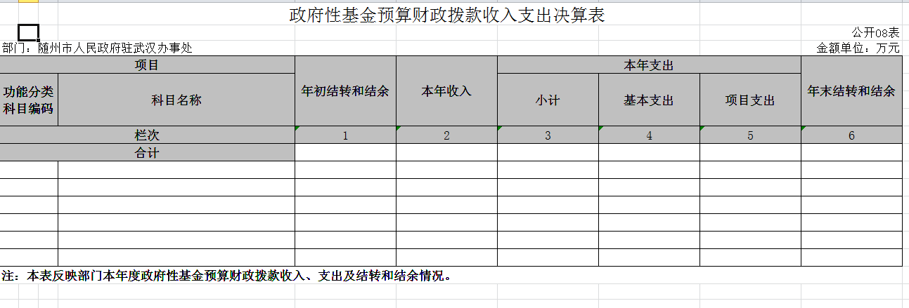 隨州市人民政府駐武漢辦事處無政府性基金收支。