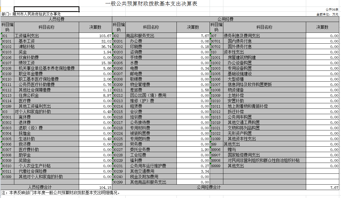 一般公共服務(類)行政運行(項):指市駐辦事處用于機關正常運轉的公務費用,包括辦公費、水費、電費、郵電費、物業管理費、差旅費、維修費、公務接待費、勞務費、工會經費、公務用車運行維護費等機關其他商品和服務支出。