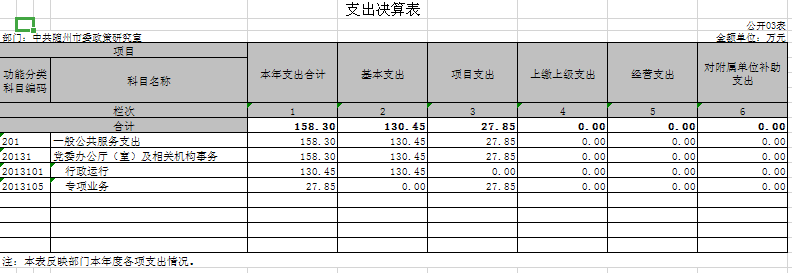 本年支出總計158.3萬元(其中基本支出130.45萬元,項目支出27.85萬元)。