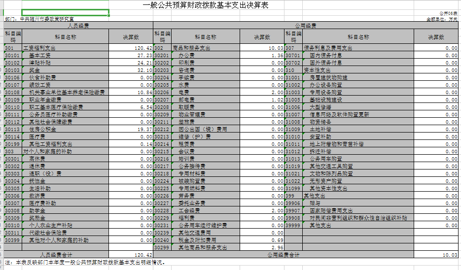 六、一般公共預算財政撥款基本支出決算表(公開表06表)