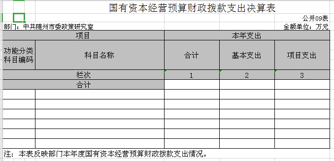九、國有資本經營預算財政撥款收入支出決算表(公開表09表)
