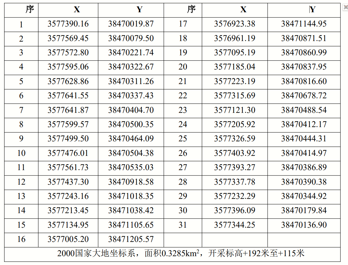 表1-1 隨縣王家灣礦區擬設采礦權范圍拐點坐標