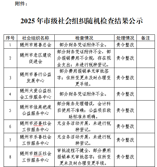 2025年市級社會組織“雙隨機、一公開” 檢查結果公示