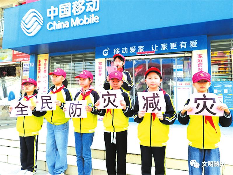 5月11日,隨縣澴潭鎮第二小學學生化身“防災減災”宣傳小使者,用稚嫩的身軀和嗓音進行防災減災宣傳,這是該校在第15個“全國防災減災日”開展的系列活動之一,學校將“防災減災”宣傳縱深拉伸,延至社區、街道、商區,引起民眾的安全共鳴。