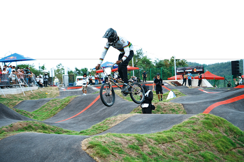 參賽人員:近300名國內(nèi)外頂尖泵道選手同場競技。開幕式上,2023UCI泵道世錦賽冠軍AlecBob和瑞士網(wǎng)紅車手Serefin Dettwiler帶來泵道炫技秀。