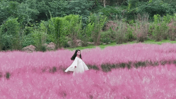 就能看到這片粉黛花海了