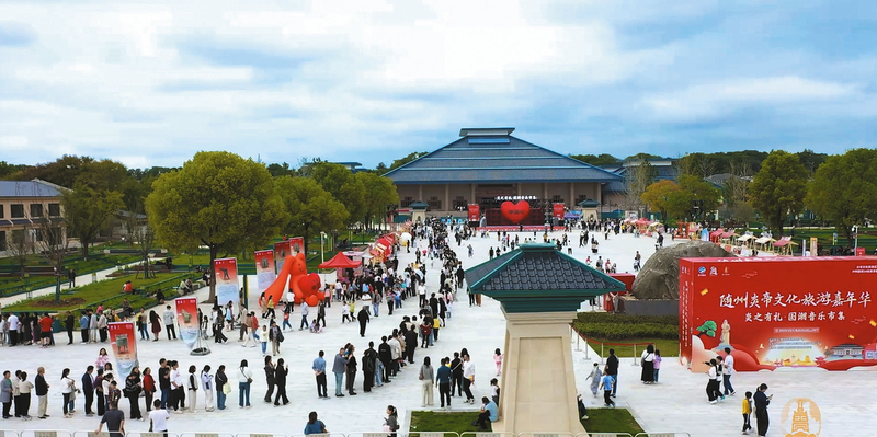國慶假期,隨州博物館煥新開館,推出6大主題展,吸引了大批文博愛好者入館參觀,日均接待市民游客超萬人次。圖為隨州博物館外市民游客排起了長隊。