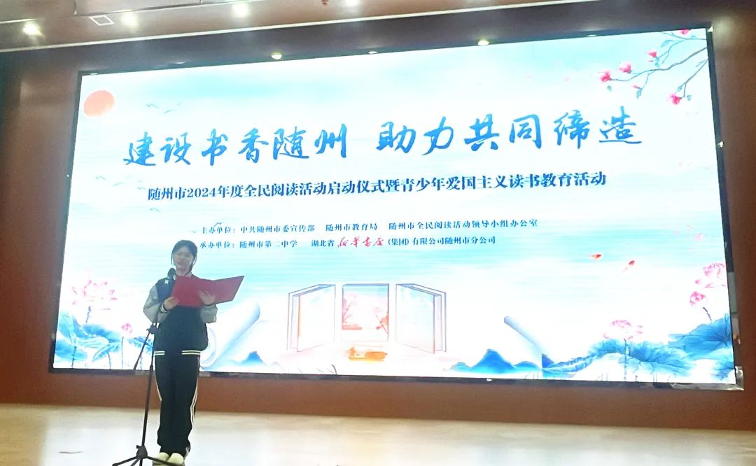 今年的閱讀主題為“建設(shè)書香隨州 助力共同締造”,啟動(dòng)儀式上,開展了經(jīng)典誦讀展演、宣讀了閱讀倡議書、在全民閱讀知識(shí)問(wèn)答中增加“掃黃打非”知識(shí)呼吁大家參與,活動(dòng)現(xiàn)場(chǎng)氣氛熱烈活躍,激發(fā)起濃烈的閱讀氛圍。市新華書店還向師生們捐贈(zèng)了100張讀書券,進(jìn)一步推廣全民閱讀,助力素質(zhì)教育。
