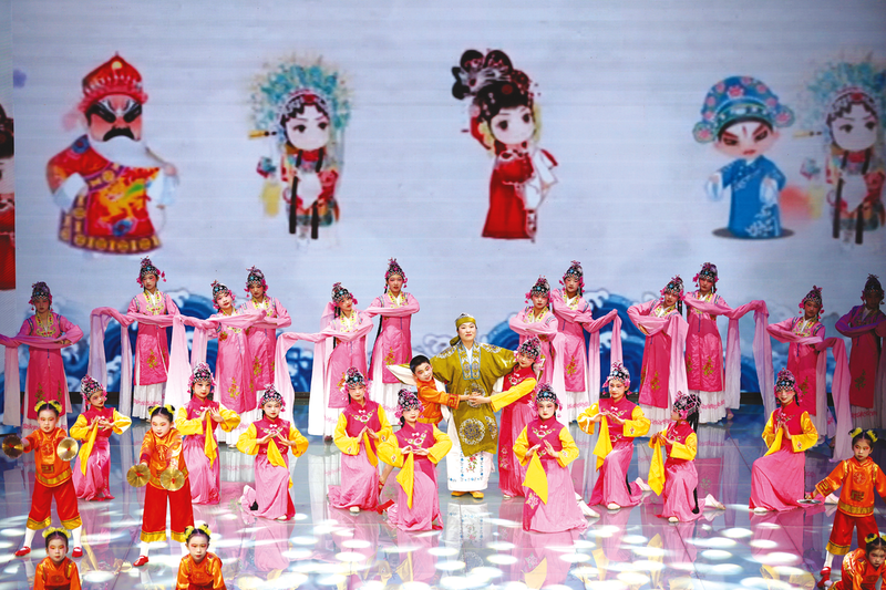 5月29日,2025年文化和自然遺產日隨州市青少年學習傳承文化遺產節目展演在市融媒體中心演播廳舉行,孩子們用舞蹈、戲劇等藝術形式,叩開歷史的門扉,讓中國傳統文化在舞臺煥發出新的生機。市領導羅棟梁、程敦懷觀看演出并為獲獎者頒獎。圖為廣水市實驗小學帶來的戲曲表演《楚劇聲聲代代傳》。