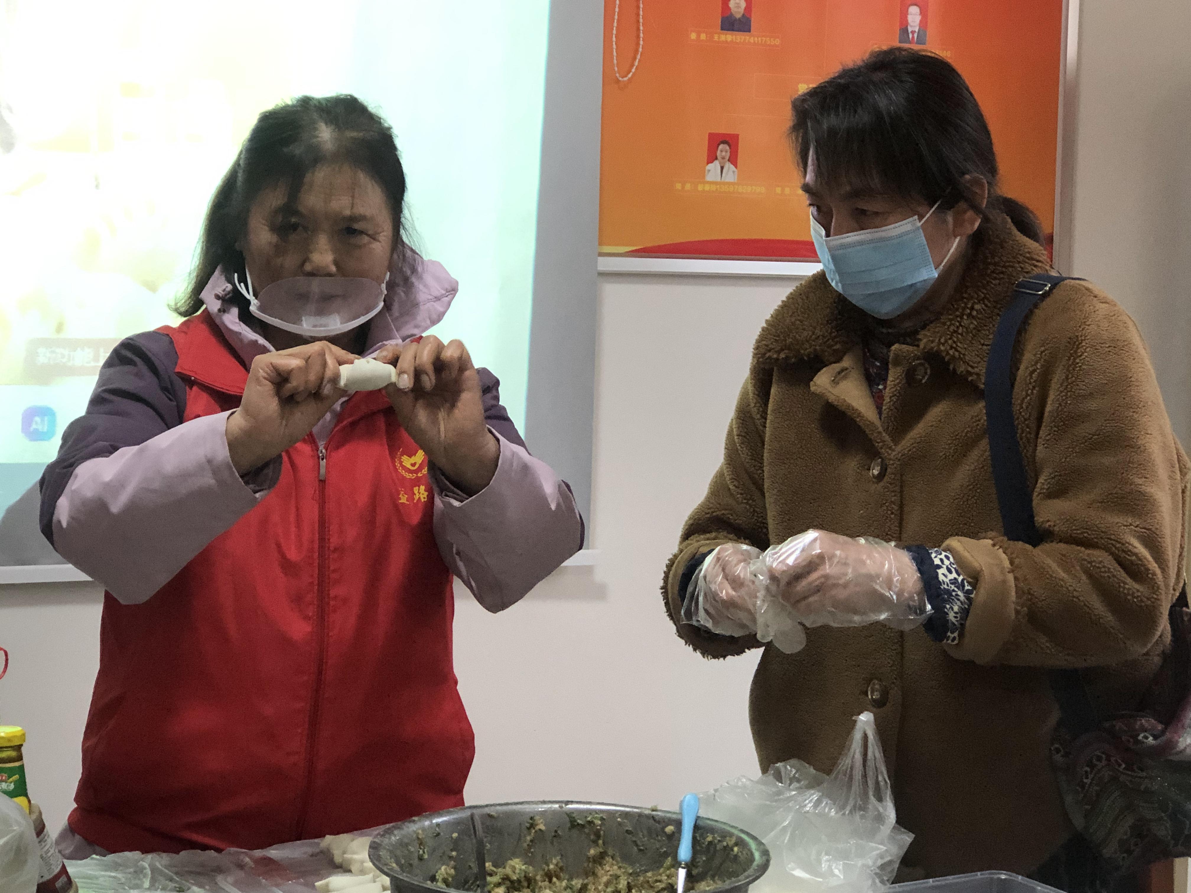在社工和志愿者的指導下,康復者們洗手戴好口罩后圍站桌邊,拿起餃子皮嘗試操作。一開始,有的餃子扁扁的像小船,有的漏了餡料像開了花。在社工的示范和鼓勵下,大家互相交流經驗,逐漸掌握要領。當看到自己包的餃子逐漸有模有樣時,康復者們臉上露出開心笑容。隨著活動推進,康復者們案板上逐漸擺滿造型各異卻滿含心意的作品。