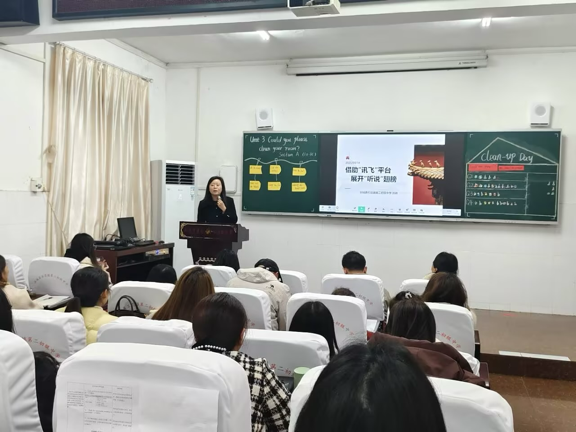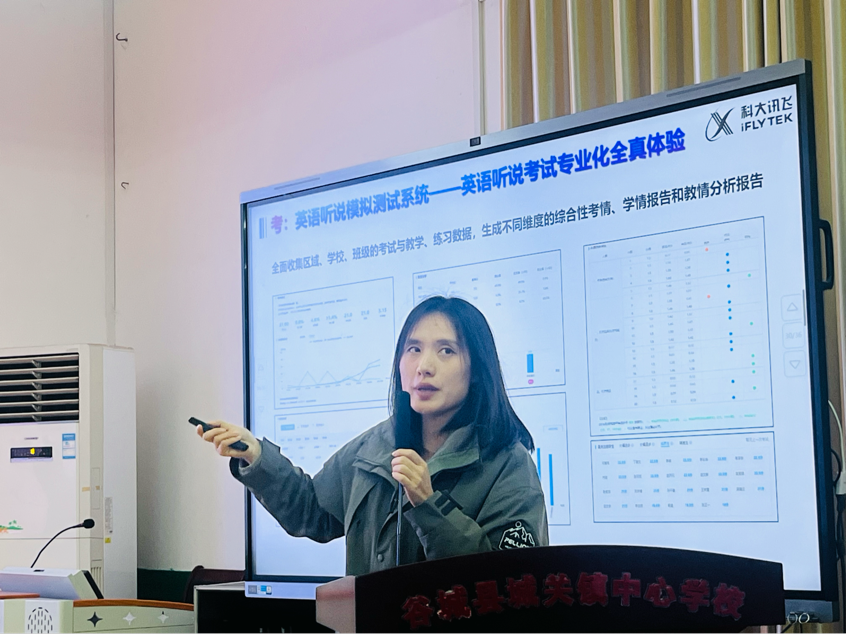 科大訊飛技術人員也帶來前沿技術講解,展示人工智能在英語教學中的應用,如智能口語評測、個性化學習資源推送等,為教學注入科技力量,賦能英語聽說課堂教學。