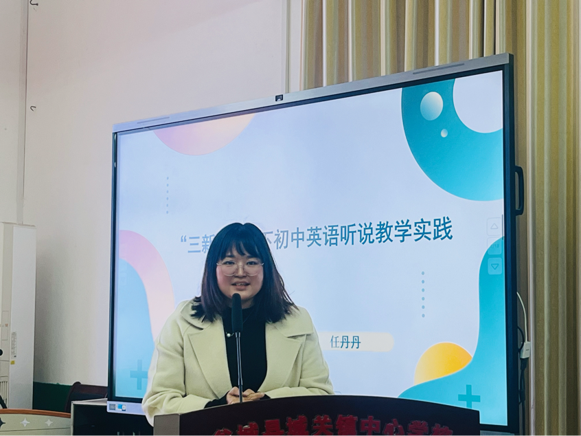 隨縣教研室英語教研員任丹丹老師以“‘三新’背景下初中英語聽說教學實踐”為主題,對接下來的工作做出詳細安排,她強調各英語骨干教師要緊扣新課標,以核心素養為導向,加強課堂教學研究和團隊建設,發揮其示范引領作用。同時,她還客觀地指出隨縣英語聽說課教學改進的方向,從重視語音教學、改變教學傾向、適當使用智能平臺等方面提出要求。