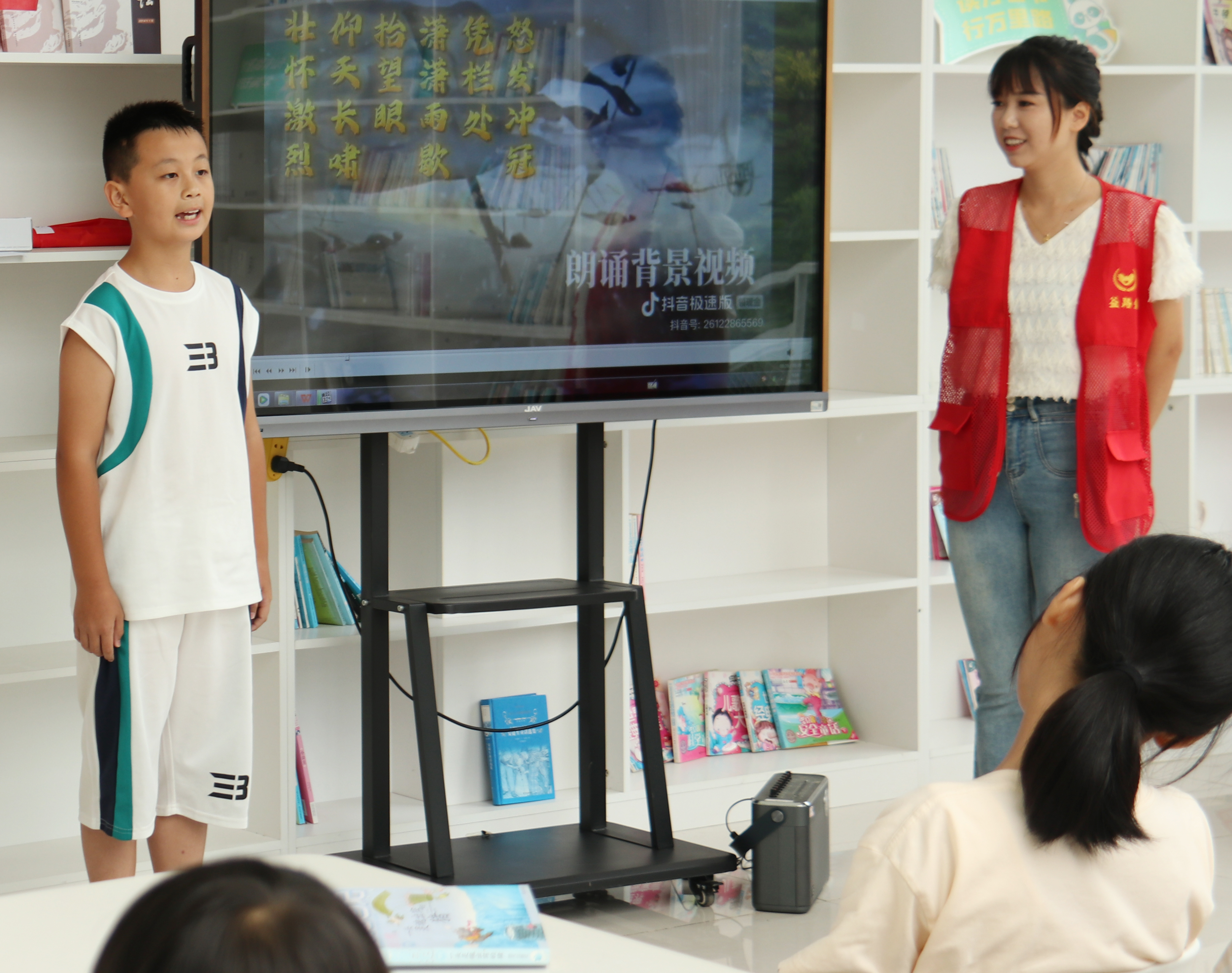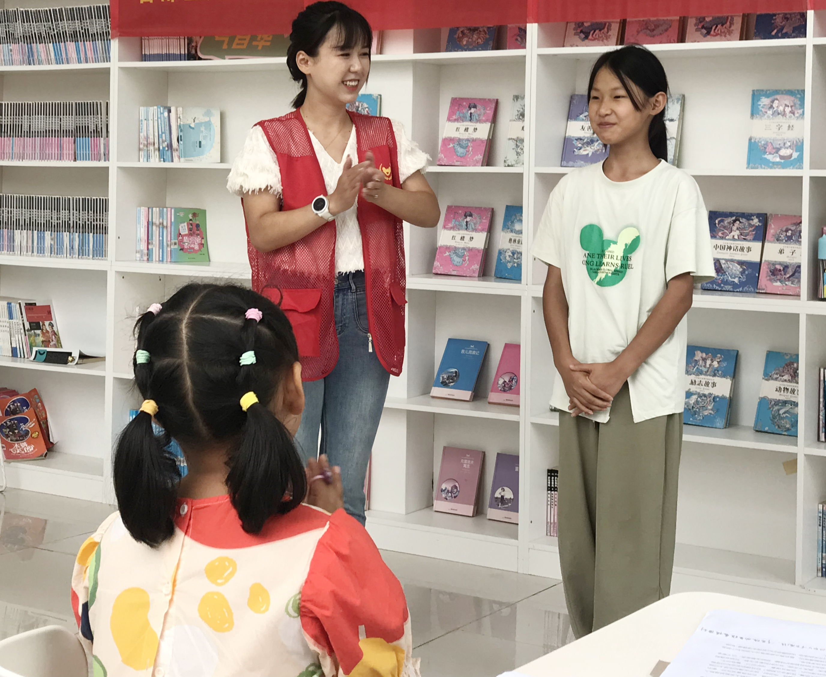 為了增加活動(dòng)的趣味性和互動(dòng)性,社工還特別設(shè)置了詩朗誦和現(xiàn)場(chǎng)分享環(huán)節(jié)。“怒發(fā)沖冠,憑欄處、瀟瀟雨歇。抬望眼,仰天長嘯,壯懷激烈……”小朋友張忠恩朗誦的《滿江紅》,抑揚(yáng)頓挫,慷慨激昂,讓在座的家長和孩子們感受到了濃濃的愛國情。其他小朋友也紛紛走上臺(tái)前,用自己稚嫩的聲音講述著書中的故事或分享閱讀心得。他們的講述或生動(dòng)有趣,或感人至深,贏得了在場(chǎng)家長和觀眾的陣陣掌聲。志愿者還陪伴低齡的小朋友一起下跳棋、玩游戲、猜謎語,現(xiàn)場(chǎng)氣氛溫馨和諧,讓孩子們?cè)谳p松的氛圍中感受獲取知識(shí)的樂趣。