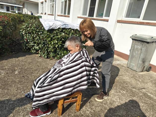 “大爺,我們來給您換個發(fā)型!”長崗鎮(zhèn)為老志愿服務(wù)隊的隊員帶著理發(fā)工具,笑容滿面地走到萬大爺身邊。理發(fā)的過程中志愿者們與他聊起家常,從年輕時的艱苦生活到如今的寧靜幸福,大爺?shù)脑捪蛔颖痪従彺蜷_。理發(fā)完畢,大爺對接鏡子,眼中閃爍著滿意。