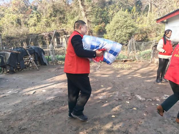 與此同時,長崗鎮(zhèn)退役軍人志愿服務(wù)隊的隊員們正忙著給村里的高齡獨居老人送被子。許奶奶,一位高齡老人,她的家簡陋確整潔,當(dāng)志愿者們將嶄新的被子遞到她手中時,她緊緊的握住志愿者的手,笑容滿面的說:“感謝孩子們牽掛著我。”