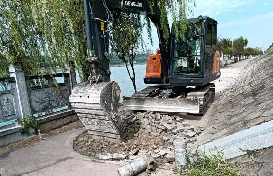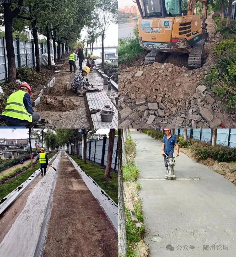 該項目于8月25日正式動工建設,各項工作高效推進中。截至目前,已完成1200米施工圍擋,拆除老舊人行道、綠道5900平方米,欄桿840米,澆筑混凝土2600平方米、鋪設生態(tài)仿石PC盲道磚地面520平方米,移栽苗木176株。