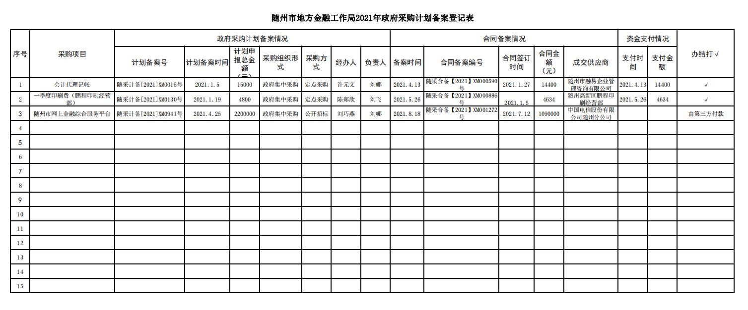 隨州市地方金融工作局2021年政府采購計劃備案登記表