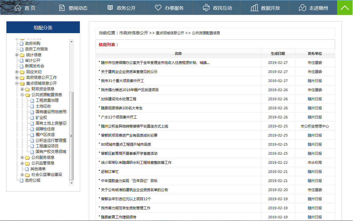 (二)隨州市政府門戶網站。2018年,市政府門戶網站全年主動公開政府信息29399條。