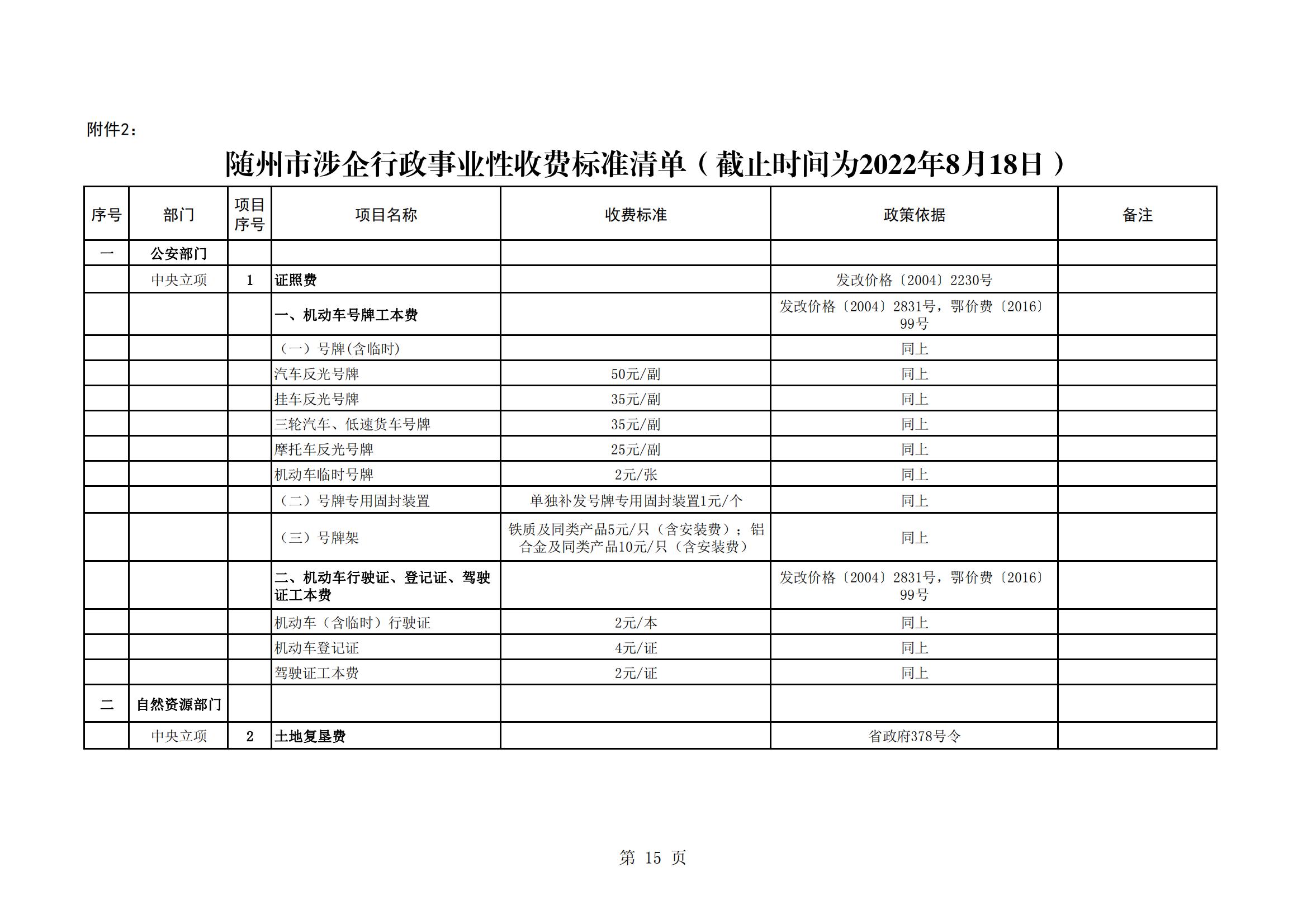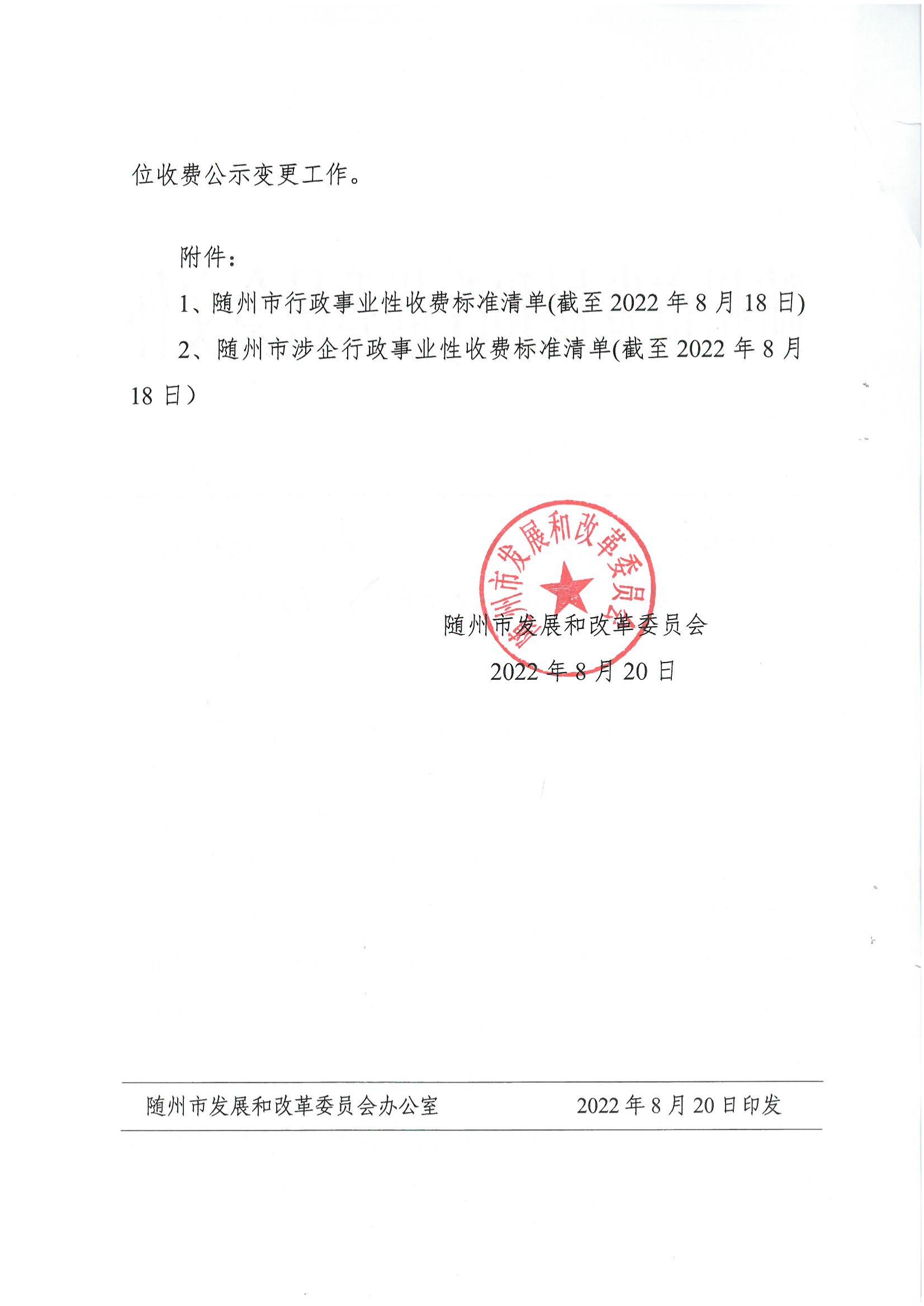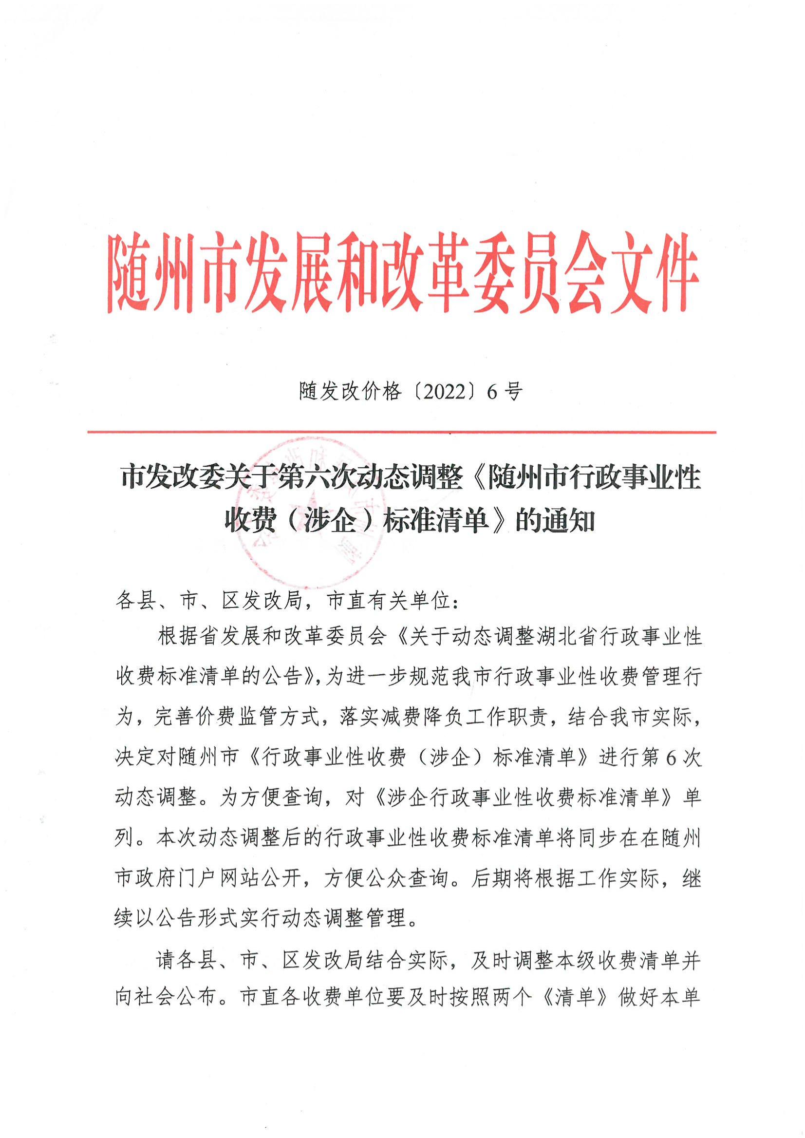 市發改委關于第六次動態調整《隨州市行政事業性收費(涉企)標準清單》的通知